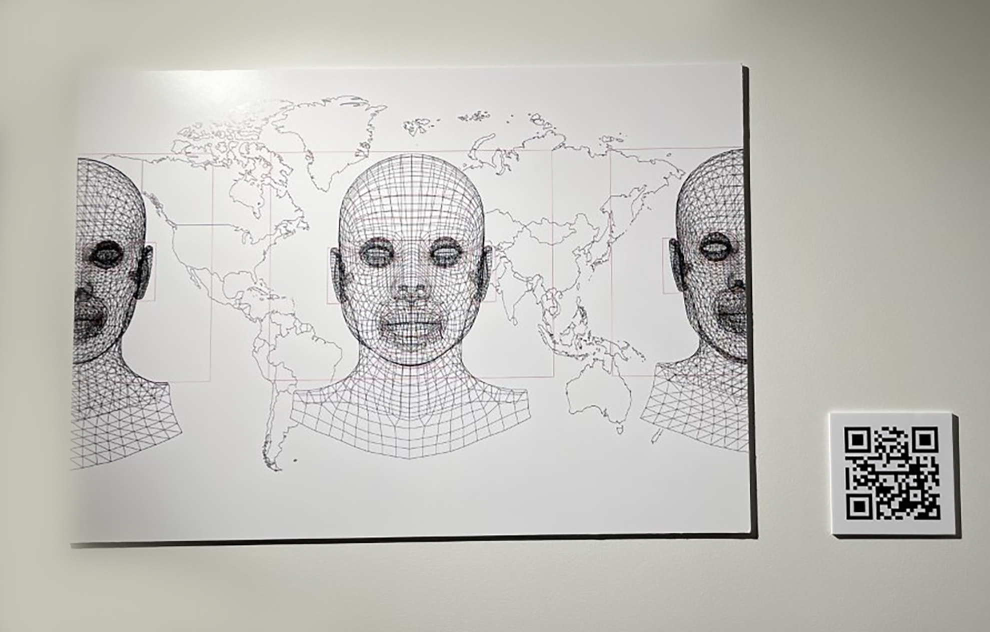 Furthermore, racism should not be seen as mere racial categorisation but as caused by a persistent framework of white supremacy that creates a racial hierarchy in the world, resulting in a cultural, social, and aesthetic convergence of the world around the white race. For example, many samples and test data used in current facial recognition algorithms are based on the white race, resulting in centralised recognition based on white race features. Therefore, this work addresses racism by highlighting human diversity and similarity through assemblage and décollage in and between the image target and CGI. A combination of software applications was used in this work: Character Creator 3 (CC3), Blender, Audacity, Photoshop, Vuforia, ZapWorks and Unity. I started by creating a humanoid 3D model based on me via the Headshot plugin in CC3. I then transferred it to Blender for decomposition into a wireframe head bust and converted it from a 3D model to a high-resolution 2D graphic through a rendering process. This process was repeated for two other anonymous face models from different racial backgrounds.