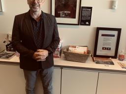 At the gifting ceremony in NJP’s office at UTS, Tim Bauer's stunning portrait of Dunghutti Elder, Leetona Dungay, whose 26-year-old son, David Dungay Jnr, died in custody in 2015.